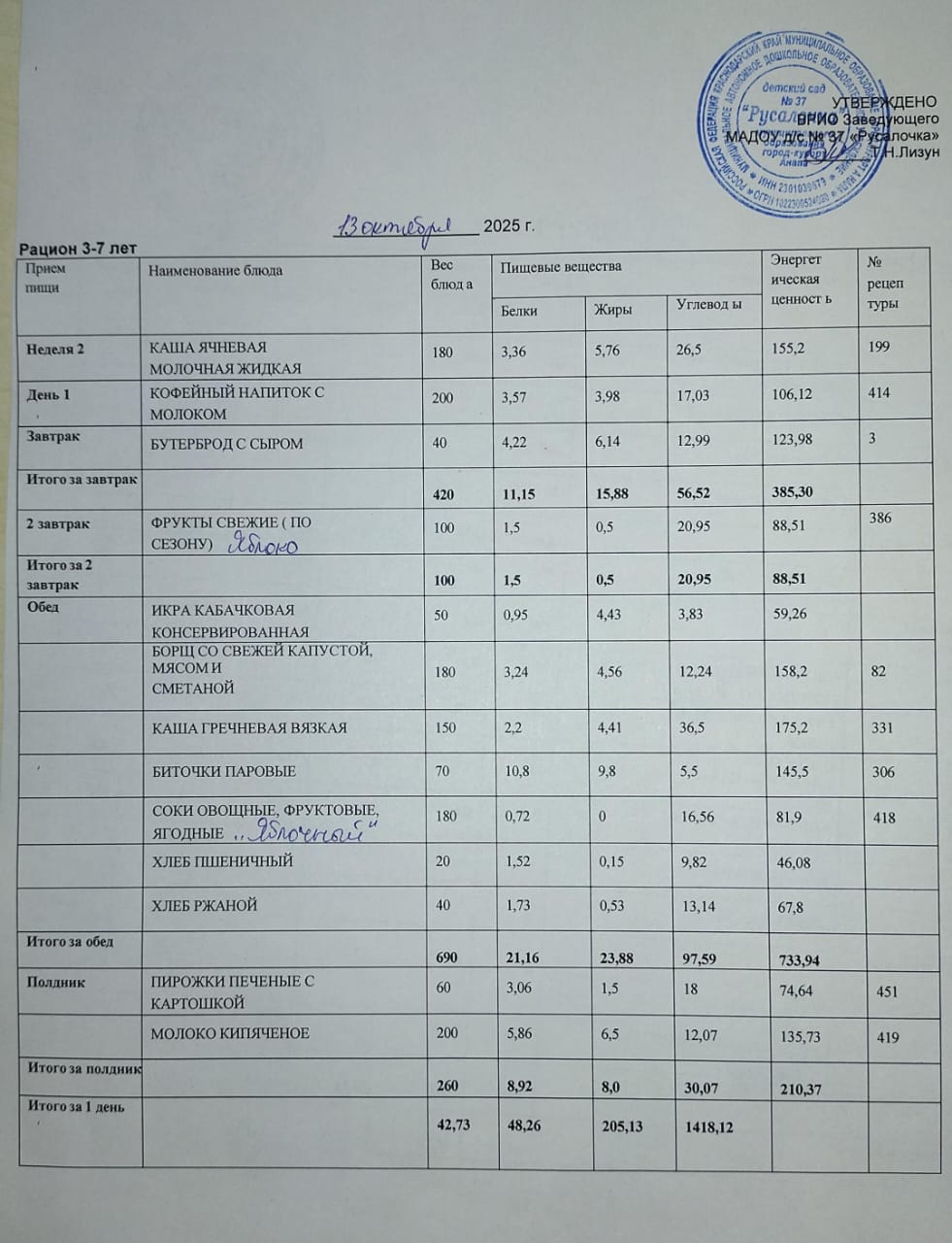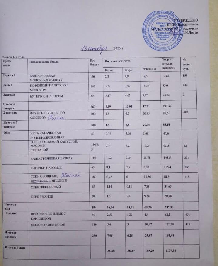 см. Приказ Об утверждении примерного 10-дневного меню на 2025 год
